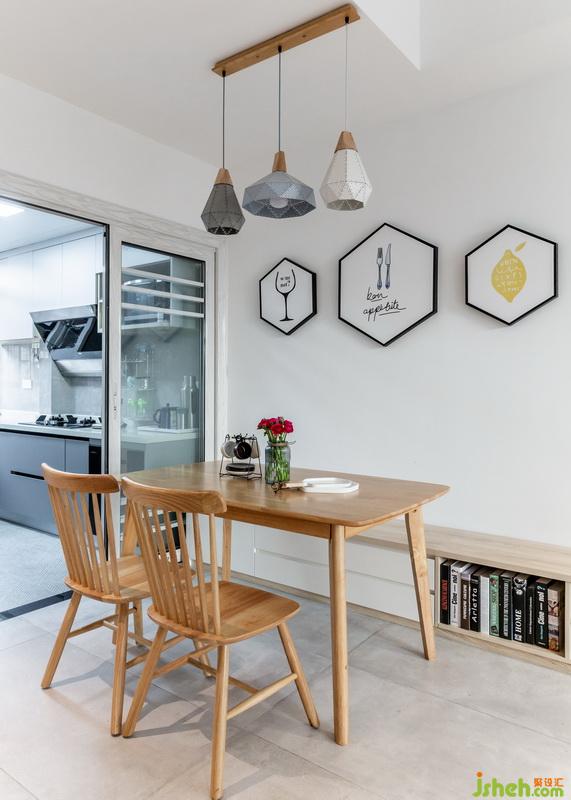 白色与木色搭配形成的储物卡座,实用与美观形成一体,原木色餐桌无形跟卡座相映成趣。闲暇时,冲一杯咖啡,摆放一束花儿…