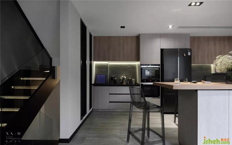 水泥质地的墙面很有工业风,格外与众不同的别墅装饰,而纹理鲜明且细腻的木质地面则为空间营造出自然的清新感和安静的归属感,相互呼应出简洁宁静的风格。