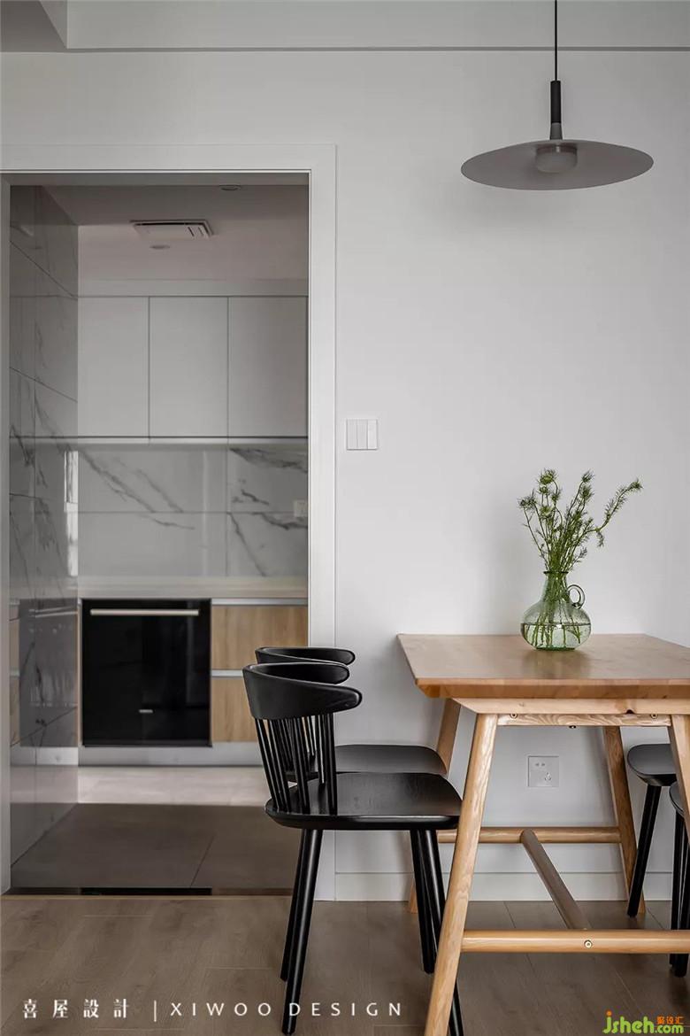 记得那是还裹着羽绒服的初春时节与周先生他们见第一面时的,乍寒又乍暖;记得他说想要一个稍带点日式,但不要太多,简洁又干净的家时的,温文尔雅;记得从设计伊始,到施工的整个过程到最后所有准备就绪入住时的,兴奋感慨。最后这个在冷静和热情之间流动延伸的家终于在我们面前呈现出灵动的温差感。