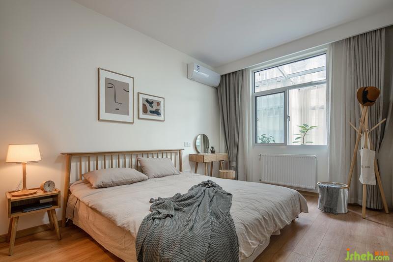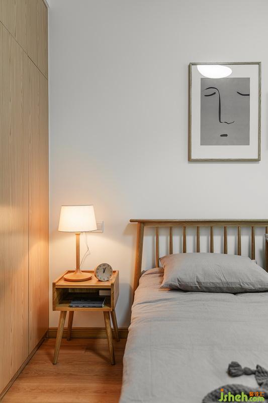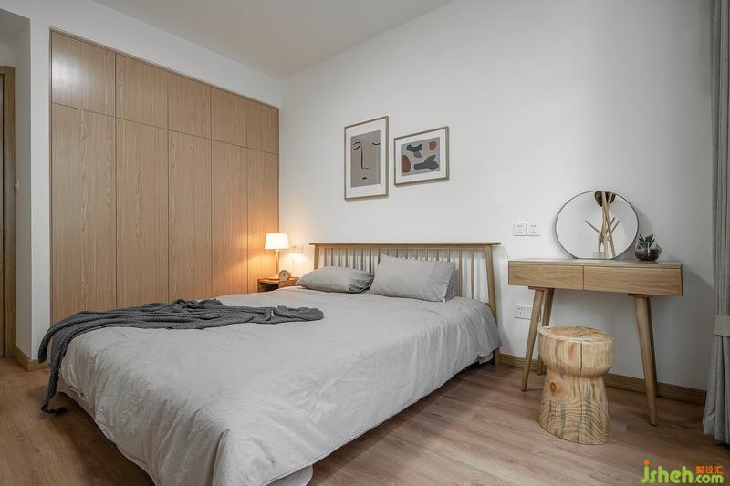 室内设计师改造之后的卧室,内嵌大衣柜柜门同样选用原木色与整体格调保持一致,使主卧拥有它本该有的收纳和清爽。