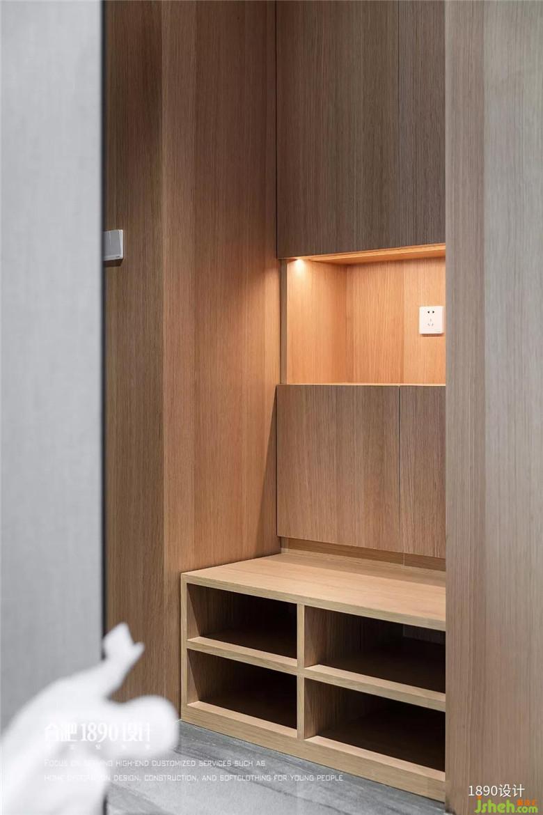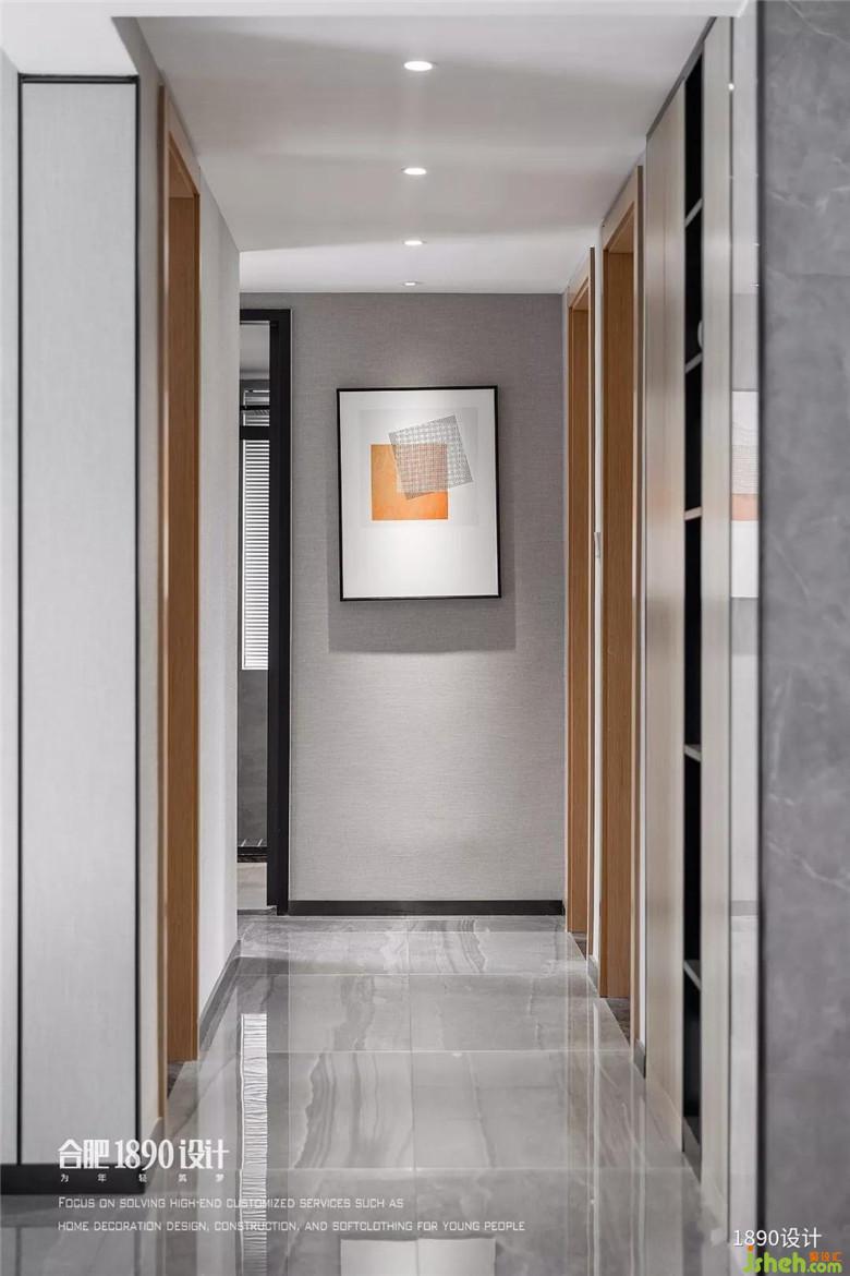 过道通过虚实的展示柜与到顶的房门,让干净清爽,同时又丰富多彩。