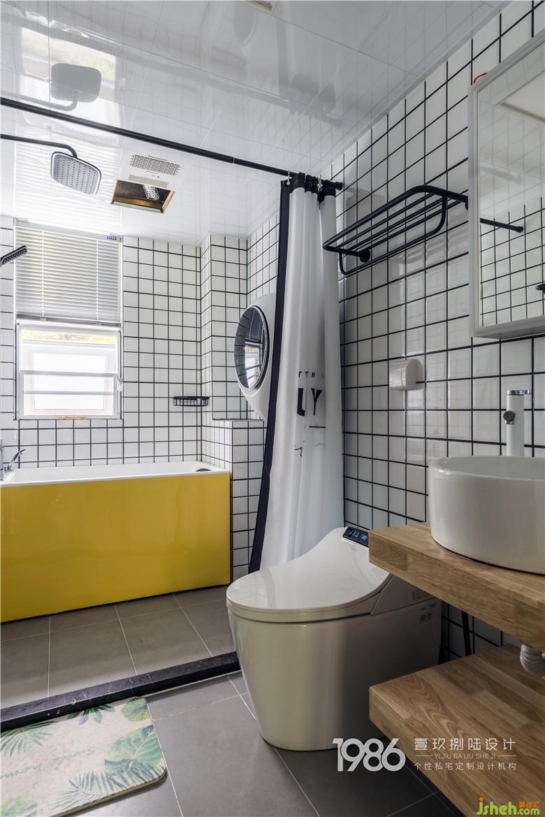 主卫和次位都实现干湿分区,方便平时的使用与卫生处理。主卫明黄色的浴缸照亮了整个空间,暖暖的泡浴给予身心一种愉悦的放松;次位马桶旁室内设计师有为老人设计的扶手,小小的细节是这个家温馨的点点滴滴。