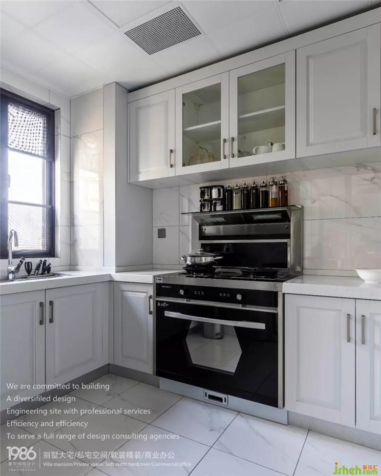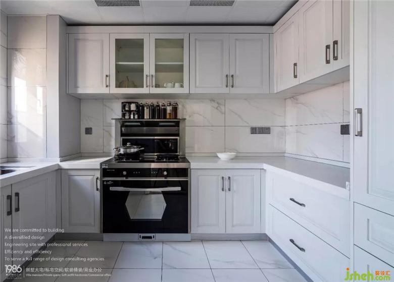 装修公司设计U字型操作台满足了烹饪需求,超多的储物空间,方便瓶瓶罐罐的存放。