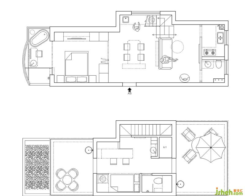 2、卫生间比较小,利用阳台空间作为淋浴功能满足业主的泡澡淋浴的需求。
