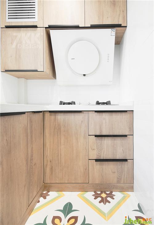 厨房只有2.9个平方,餐厅一侧做的西厨吧台,中西厨结合。清新跳色的瓷砖搭配干净清爽的中厨环境。