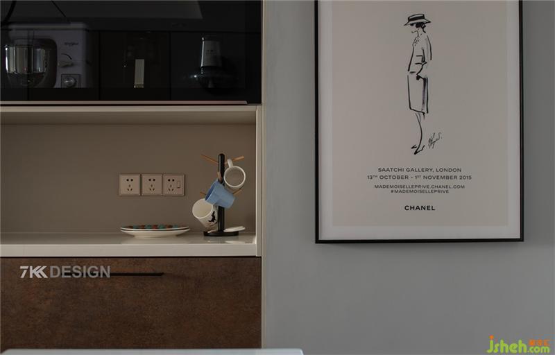 入户门进来,抬眼就被墙上的一幅时尚简约的装饰画吸引,提示着你卸掉工作一天的疲惫,拥入舒适,温暖的家中。 房子是一梯一户的,鞋柜都设置在电梯进来的空间,这样进户门进来就腾出鞋柜的的空间,整个餐客厅视野感也比较通畅宽敞。