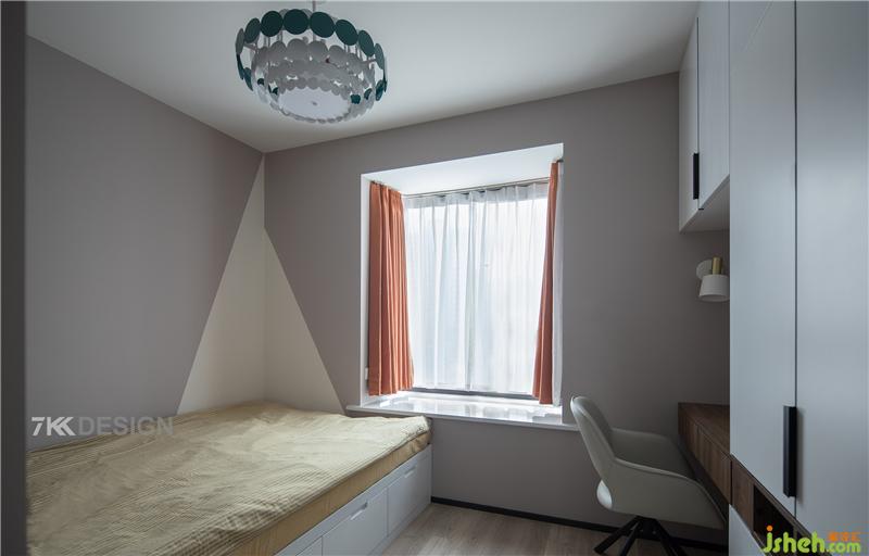 次卧暂时作为书房使用,设计多功能形式,进门靠墙定制的柜体结合书柜一体,里面靠墙也是定制的榻榻米床下面可以收纳增加储物。这样次卧有时也作为父母偶尔来临临时居住的空间。以后有小孩可以作为儿童放使用。