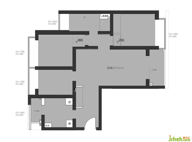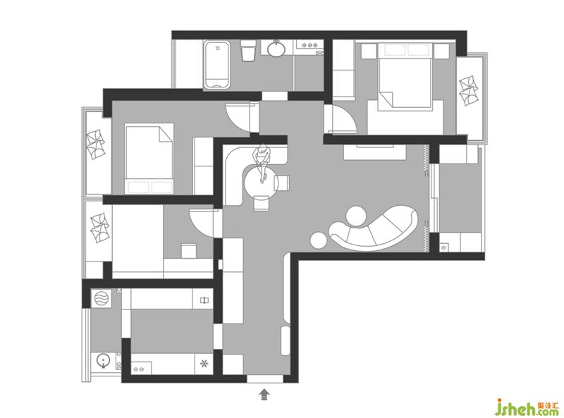 改造前原始户型图分析 由于是精装房,业主预算有限,所以在格局上没有大的改动。 房型是三房,比较紧凑,每个房间面积都比较小,收纳空间不足。