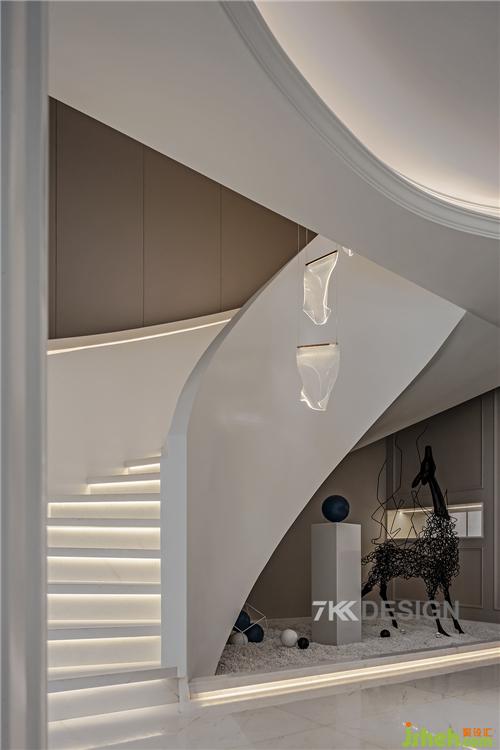 楼梯扶手与台阶都嵌入暗藏视灯带,使得空间充满高级感,楼梯的层次感瞬间不一样,同时也让上楼梯都有了满满的仪式感!
