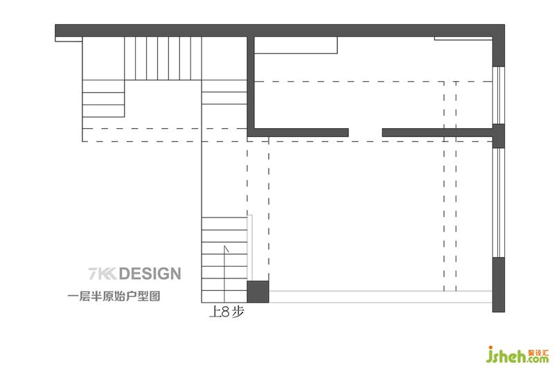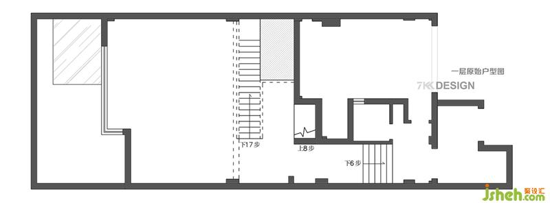 (一层和二层)夹层原始户型图 原始一楼到夹层的动线,使得夹层和一楼互动比较独立,由于一楼的卫生间拆除,要借用夹层的空间设计卫生间区域。
