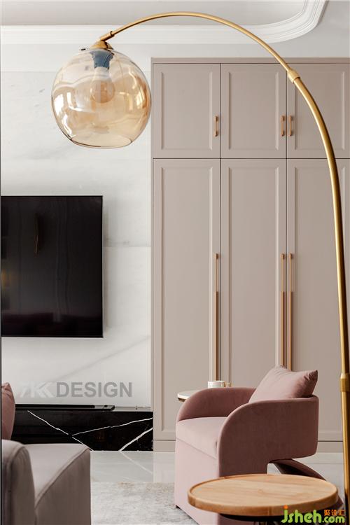 高级质感灰色沙发,搭配质感的黄铜落地灯、茶几、装饰柜,无处不散发着精致、轻奢的气息。