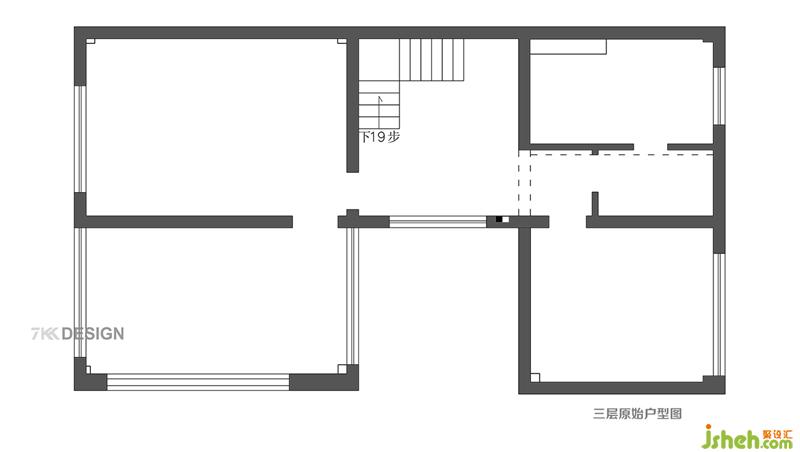 三楼原始户型图 从平面图看到中间凹进去的空间处于外立面,后期重新搭建,为三楼增加使用空间。凹进去的左边空间是三楼的露台空间,物业不允许封闭。