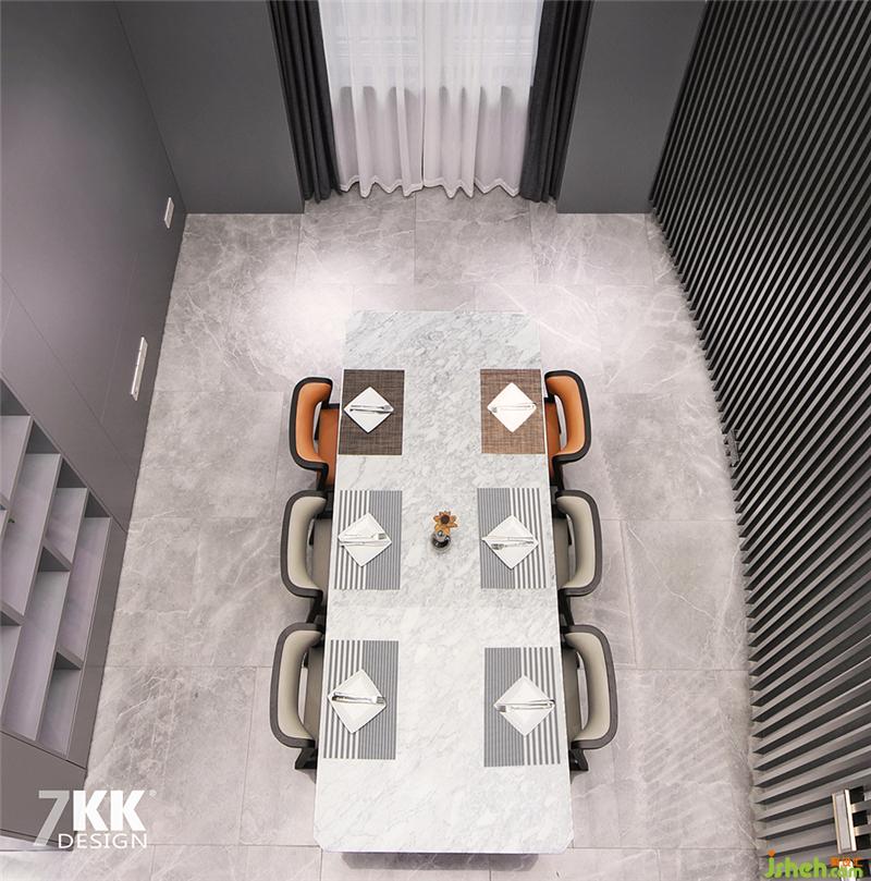 原先的二楼部分敲掉,做成挑空,从楼上俯视往下,整洁又美观。大气,震撼。