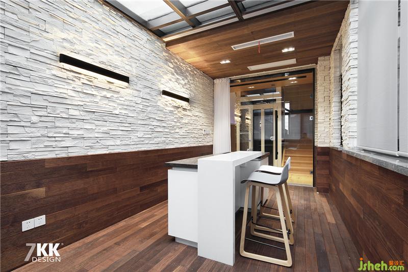 苏州别墅设计三楼的露天花园改造成的休闲区。阳光房的设计,内部藏电动百叶,黑夜白天自动切换。平时有朋友来会客在楼上也可以很休闲的感受自然的光线和美食的享受,人生的乐趣就是大家坐在一起,谈笑风生,品味人生。