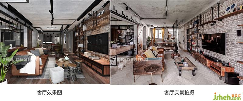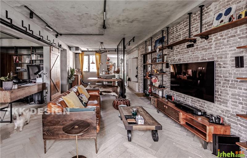 本案位于上海市静安区新梅共和城,房子整体装修风格是有些复古的工业风,设计时间一个月左右,从施工到家具安装入场历时三个月,顶和墙面采用素水泥漆,特意打造粗犷的感觉;客厅、餐厅、书房以及过道等开放功能区顶面走明线,中央空调内机裸装在外,电线和水管明装后喷成黑色;利用铁艺和板式结合的开放架作为装饰,许多家具也是由有旧物改造利用,软装饰品搭配上有很多是由业主特意精淘筛选搭配,可以看出业主对这所房子的用心之处。整个装修设计师也是花了很多心思,上海装修设计感爆棚,最终打造个性、粗犷、神秘而富有灵魂趣味的专属于这对年轻夫妻的工业风居家环境。 设计师说: 业主是刚从国外回来的一对90后小夫妻,这对年轻的小夫妻从曼彻斯特回国后,就开始着手装修自己家的一套旧房子了,他们一来就跟我说喜欢工业风的感觉,开始我没想到他们接受度能这么广,聊下来才知道他们连管道都外露这种调调都能接受,好吧,这将会是一套比较有意思的案子~~~他们在曼彻斯特养了一条斗牛犬贝果,非常有感情,即使回国要花千金也漂洋过海将它带回来了,这可是一条见过世面的狗狗,哈哈。设计和装修的过程都很愉快,他们有较强的审美,加上又喜欢买买买,软装基本不用我操心。