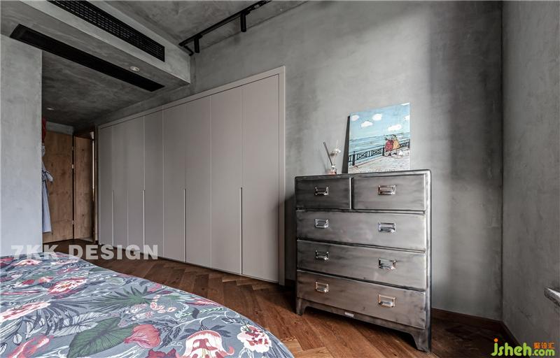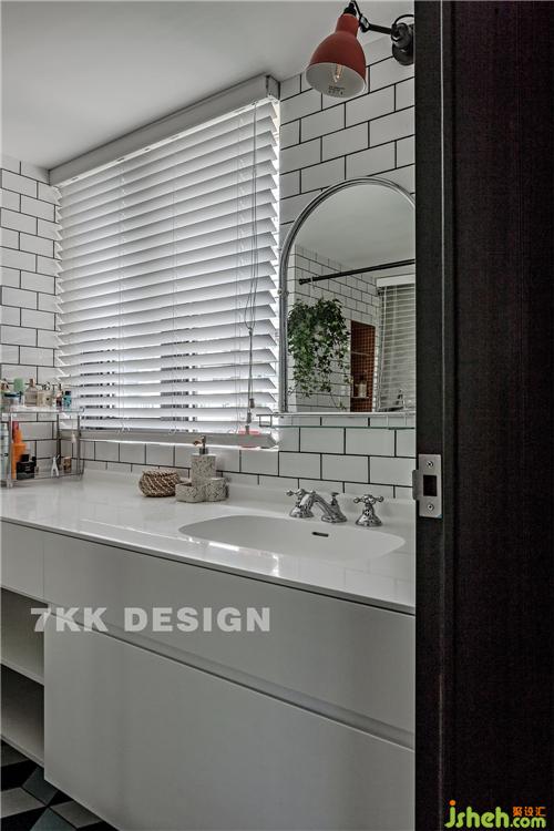 扩大主卧面积,借用书房的部分空间给主卧定制一整排白色简约衣柜,干净整洁,大大增加了储物功能,上海装修设计同时也解放了原主卧放衣柜的空间,扩大主卧卫生间面积。用玻璃窗户隔断,增加主卧通透延伸感,选用百叶帘使得主卧和主卫之间随时拥有独立的私密空间。
