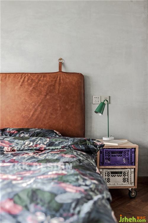 带滑轮的床头柜,精致的绿色小台灯,简约而不简单的搭配。