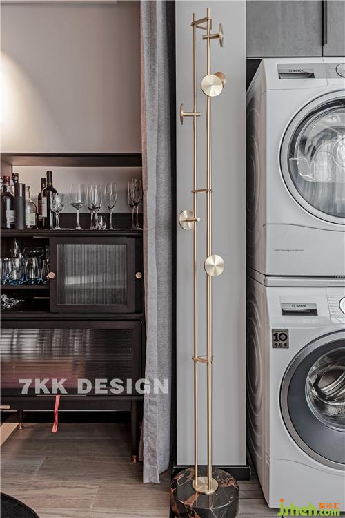 这对年轻夫妻对生活品质要求比较高,平时喜欢喝红酒,对于酒柜的搭配也很讲究,选择和沙发另一角复古的放映机相呼应的复古黑色铁艺酒柜,里面摆满了各种样式的酒,成了客厅一道亮丽的风景,显得家里大气上档次。