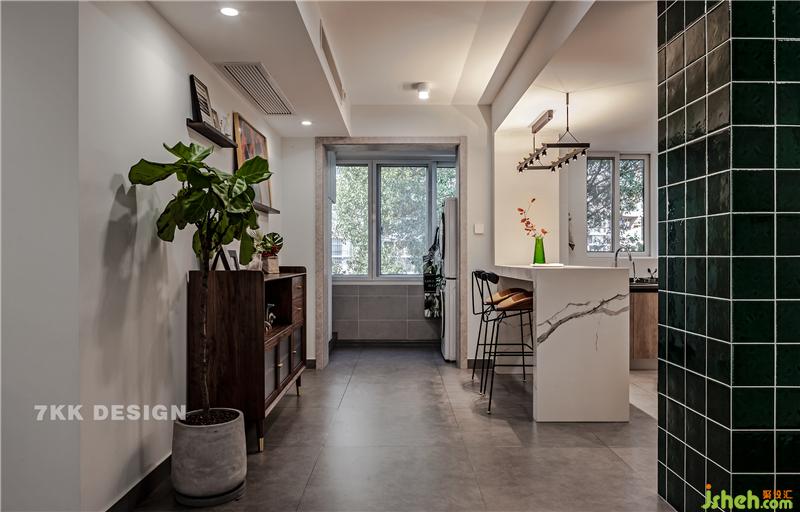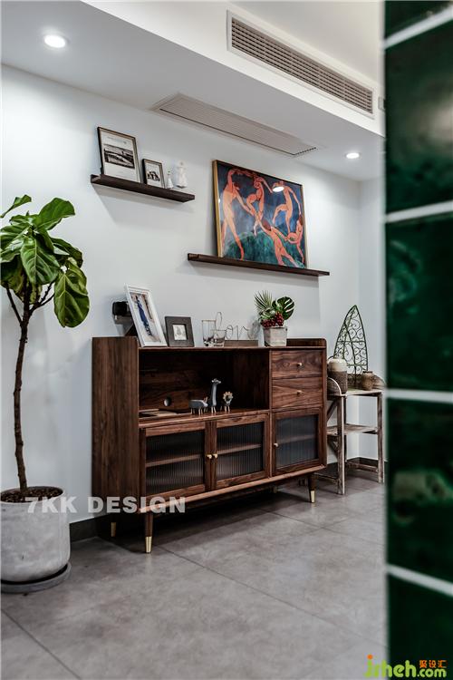 从玄关进来看餐厅视觉,简约时尚,复古又清新。