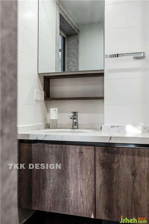 卫生间改造成一个,设计成干湿分离。简约的白色方块瓷砖,简约清爽,镜面打开里面可以放置业主平时收纳的化妆用品和日常用品。