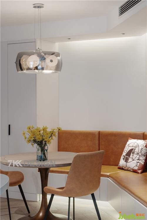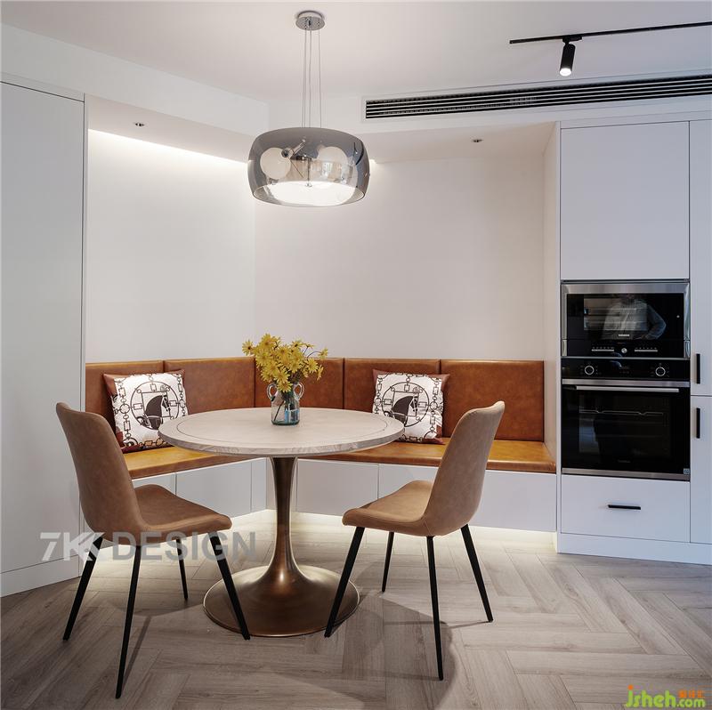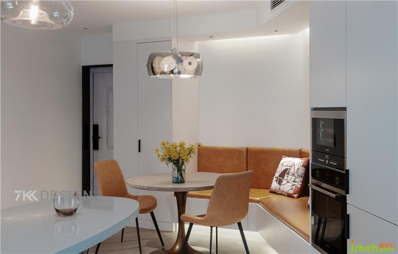 4、利用不规则转角的空间定制卡座餐厅,最大化利用空间。