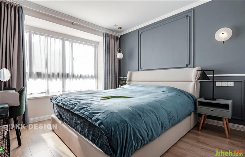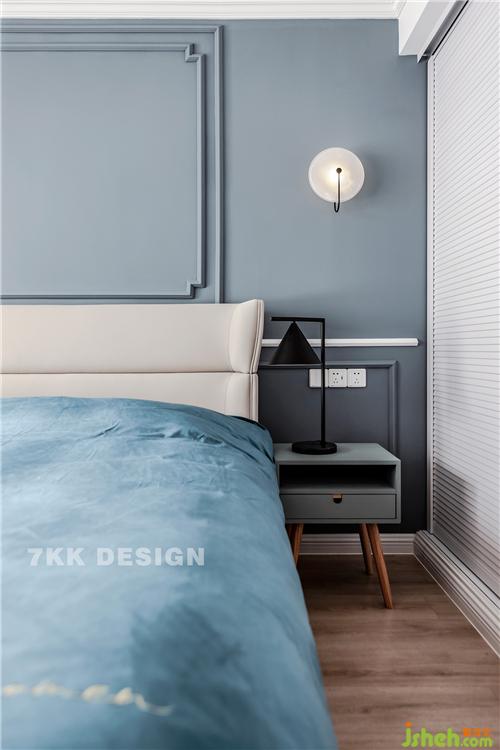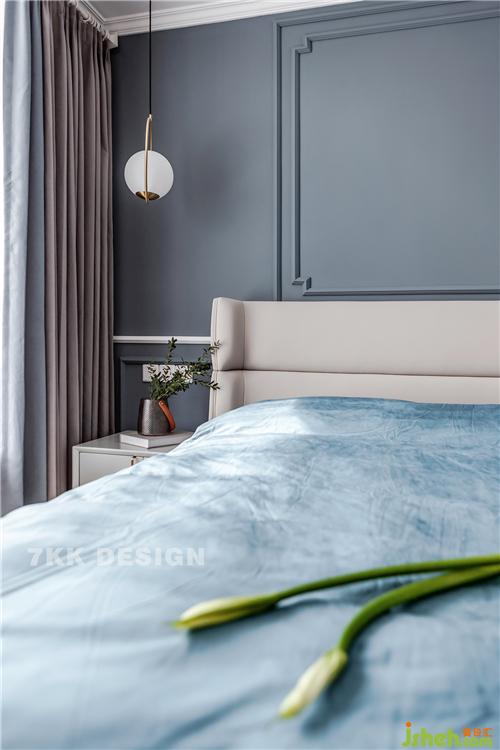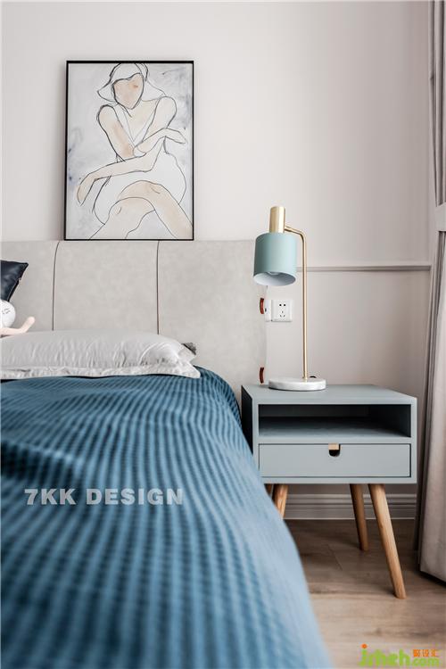 业主真的是比较喜欢蓝色的,床品选择蓝色的搭配+床头柜一抹绿色点缀,营造静谧的睡眠空间。