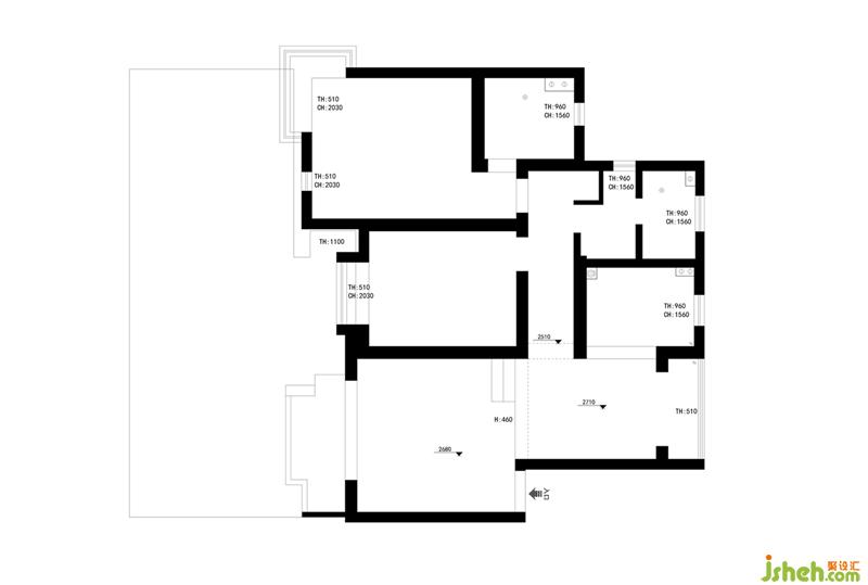 3.次卫因为墙体的关系,整个空间给人一种压抑狭小的感觉。