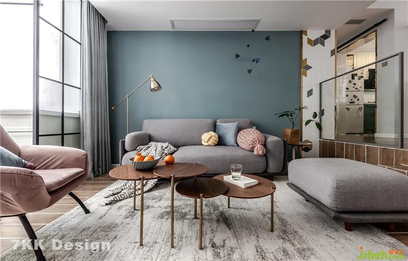 通过客厅与餐厅之间的透明隔断,让整个房间的采光变得更为通透并有效分隔开了功能区。上海室内设计师配合屋顶的不规则艺术灯搭配整个屋子的色调,北欧小清新的感觉油然而生。