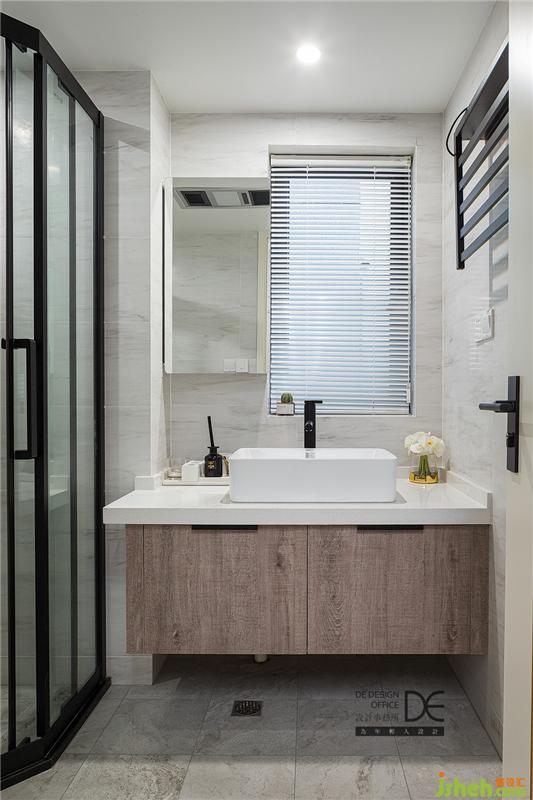 紧凑合理的L型,把浴盆放到了窗户的位置,方便爱美的业主化妆时可以照到自然光,镜柜采用了可以对滑的形式,可移动到台面的正前方,方便实用。