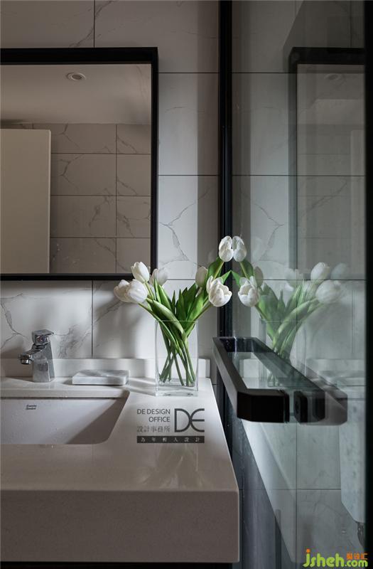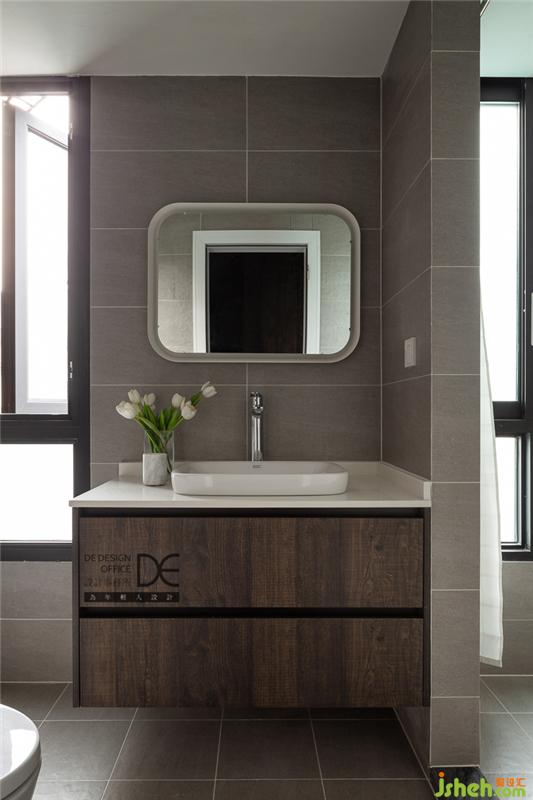 卫生间采用了浅色的背景,搭配深色的家私,实现了其他空间风格的延续。