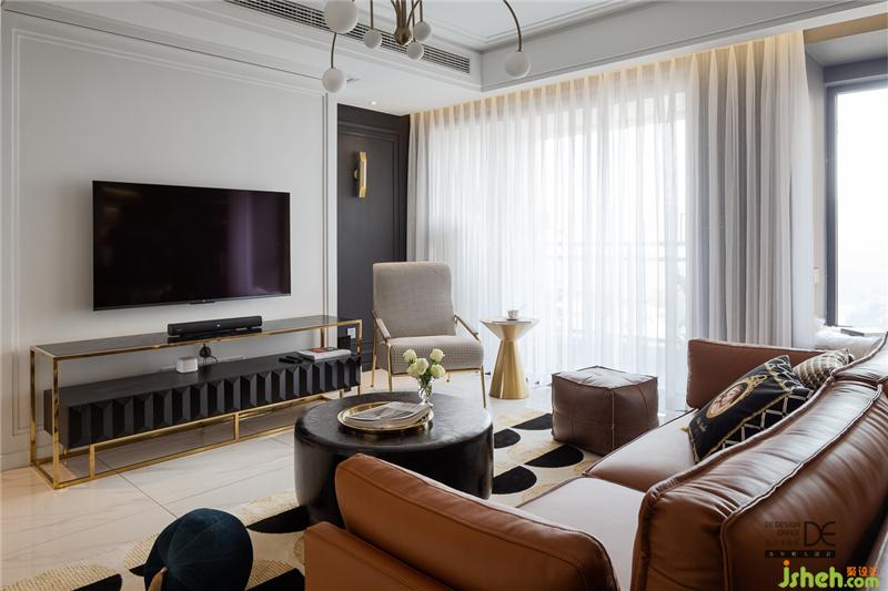 和墙面同色的踢脚线让空间的块面更加干净。金属元素的加入,让空间休闲有余的同时还多一份精致和惊喜。