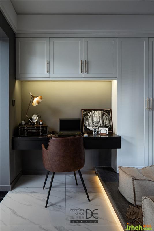 这里不仅有书房的功能,还保留了一个地台作为休闲角落。设计师在地台边缘精心设计了灯带,让整个空间更具层次感的同时,又增加了一丝浪漫之感。