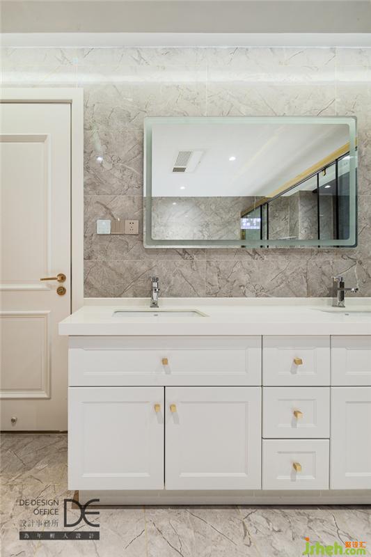 主卫采用干湿区分离,白色点缀金色,结合双台盆设计,简约而不失质感,尽显酒店风。