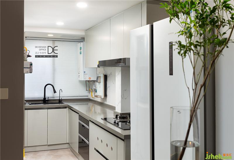 半开放式厨房节省空间的同时,也便于跟餐厅的家人沟通,黑白灰的经典搭配显得空间干净整洁。