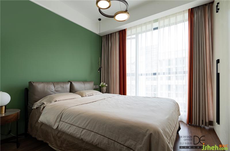 次卧的色彩丰富而不繁复,在大面绿色的衬托下,窗帘的色彩画龙点睛,让整个空间灿烂起来。
