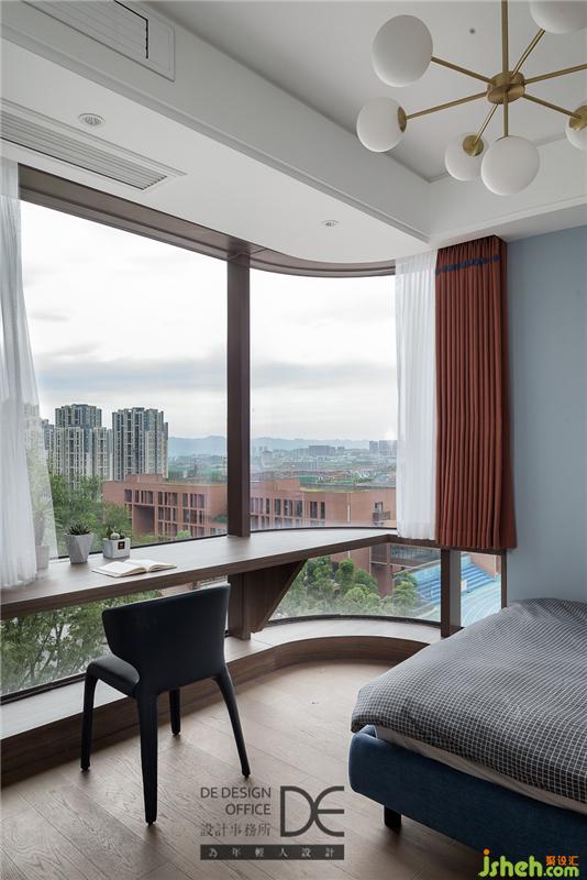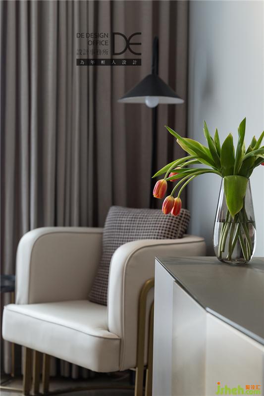 在重新规划了户型结构之后,老人房依旧足够宽敞。沉稳的配色,冷而不冽,单椅和金属落地灯无形中为这里增色不少。