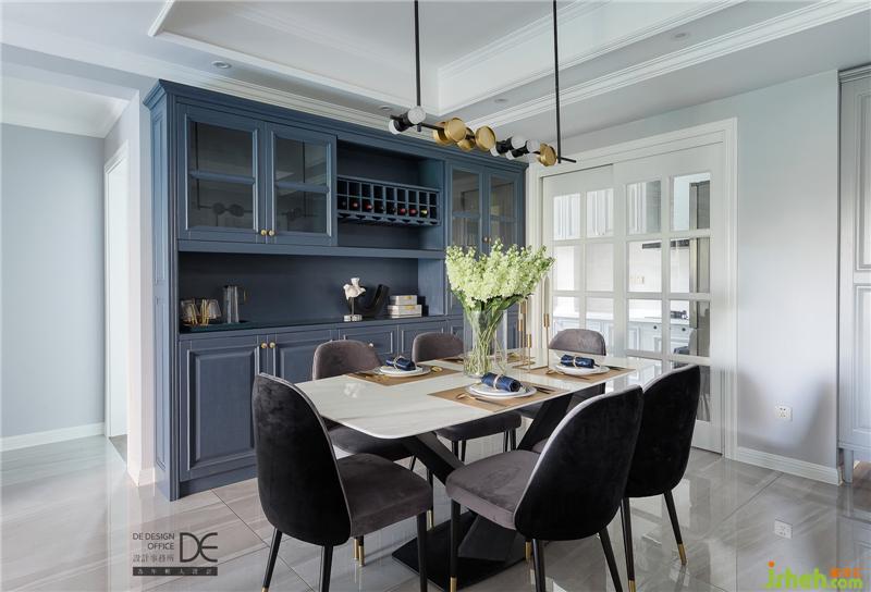 精通中国酒文化的男主人对餐厅的酒柜“情有独钟”,在设计之初就表示要有一面超大的酒柜来陈列他收藏的美酒,餐厅的酒柜正好满足了他的需求。