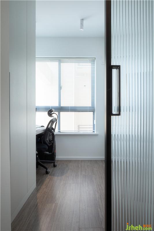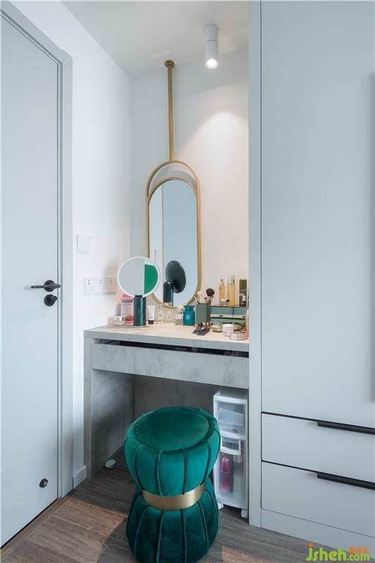 为了满足小姐姐的工作需求和“美丽需求”,衣帽间保留衣柜并设置书桌,兼具了书房的功能。
