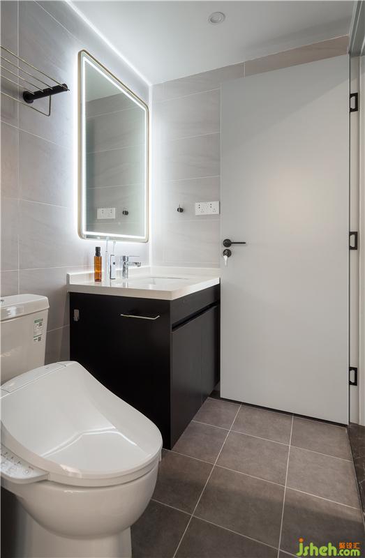 卫生间原本的空间较小,在设计师的调整下做了干湿分离,浅色瓷砖配上智能马桶,干净而实用。
