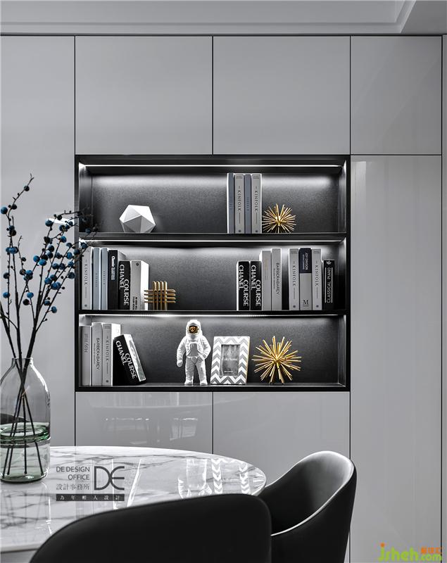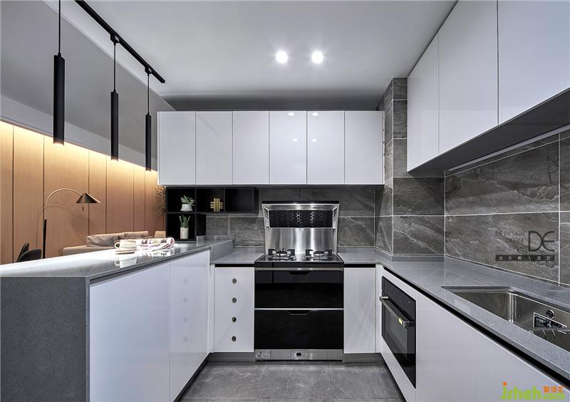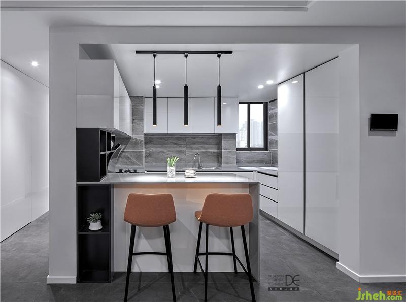 以白色为主的色调,让厨房和餐厅相呼应,开放式厨房添上一丝烟火气息,生活因此鲜活起来。