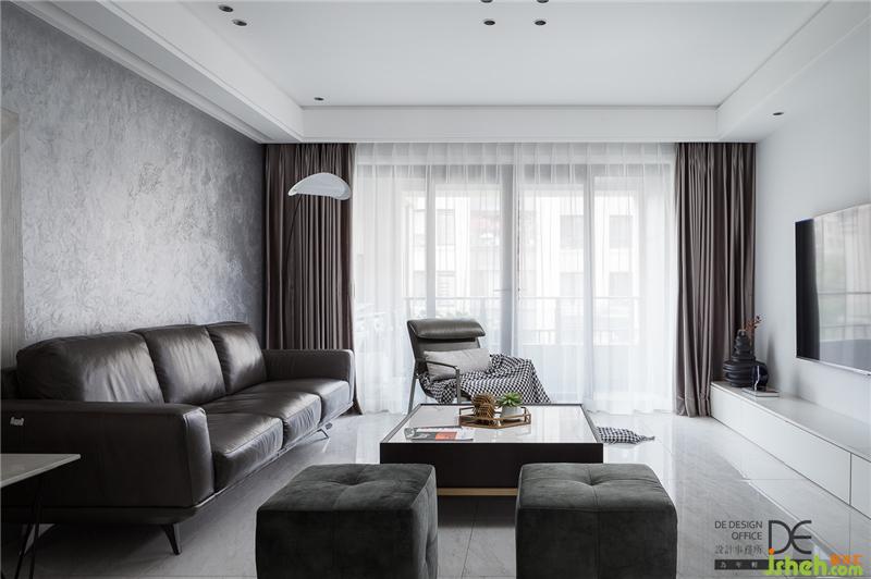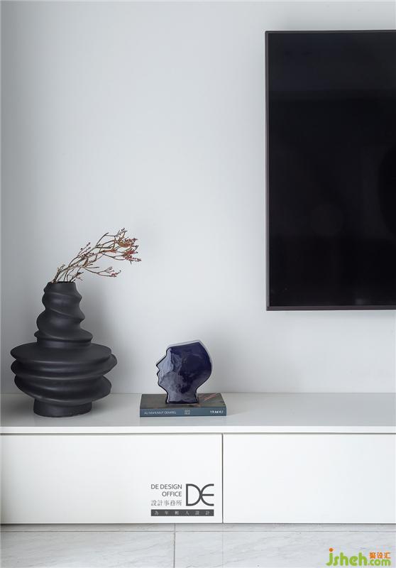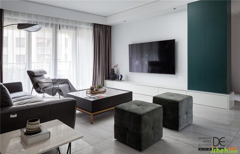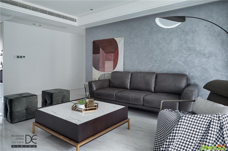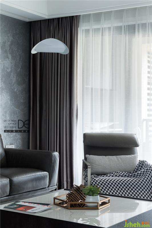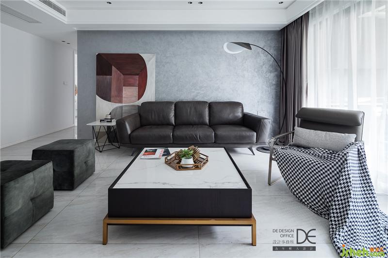客厅是经典的黑白灰色调,一抹绿色打破了空间的宁静,重庆室内设计师让颇具高级感的空间灵动起来。
