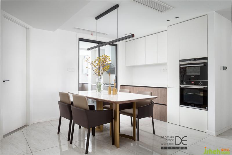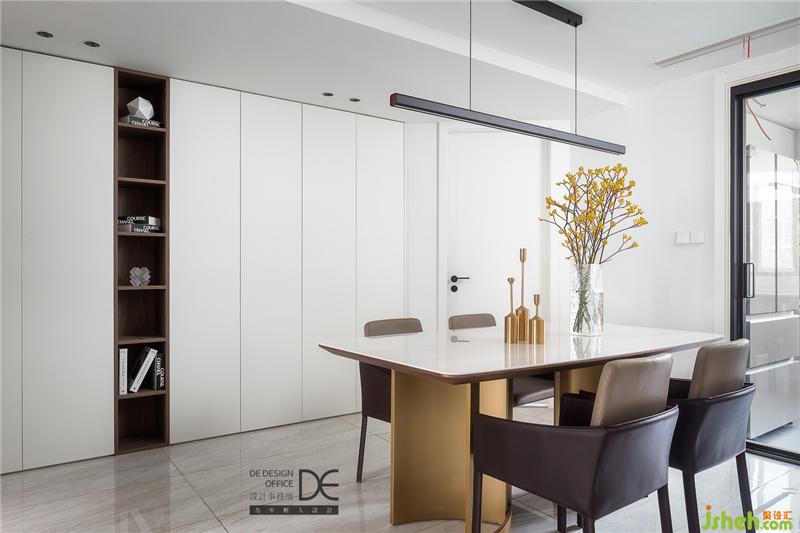 一家人坐在一起才是生活。餐厅配色干净,餐桌跳脱出冷静的黑白灰,重庆室内设计师摆上金黄色花束,有些轻奢意味,仿佛秋日纷繁的落叶,进餐时也能增加食欲。