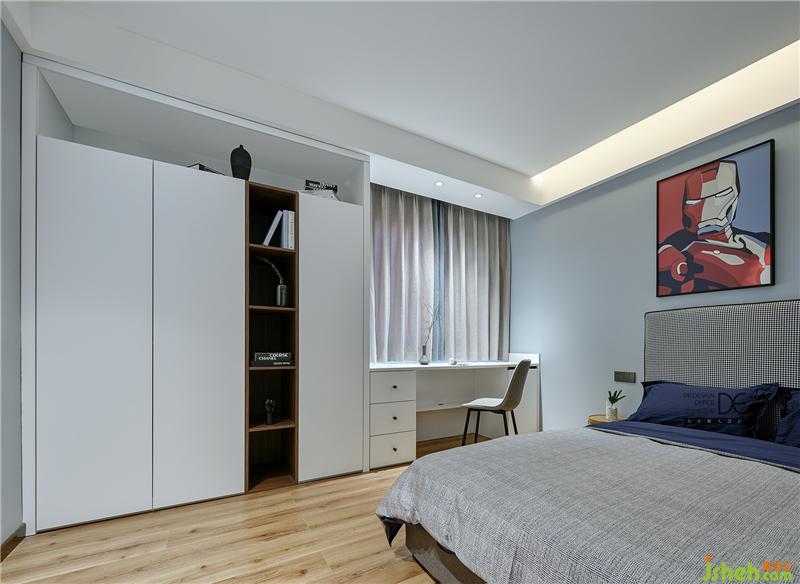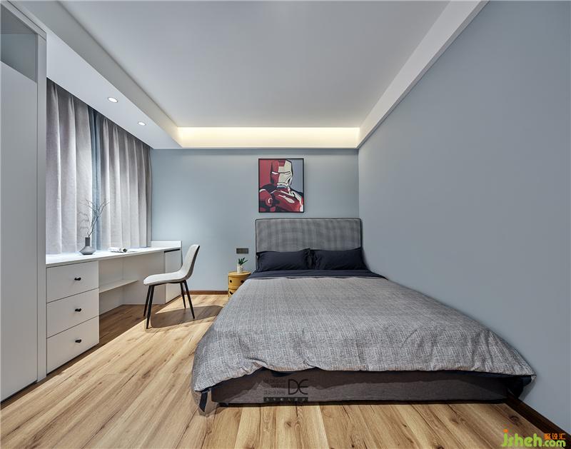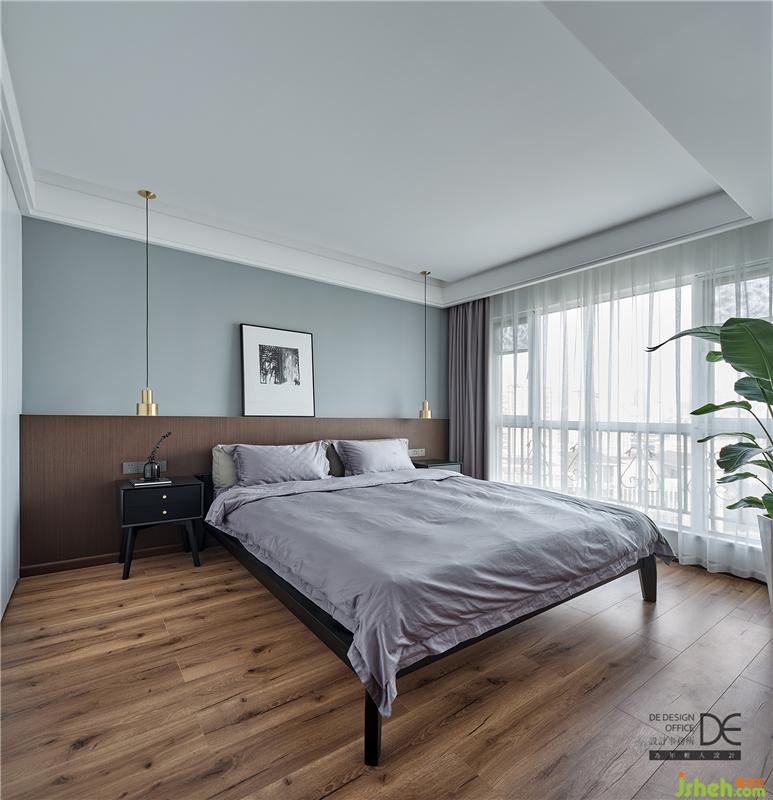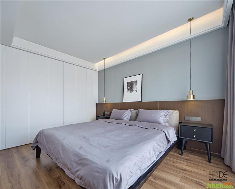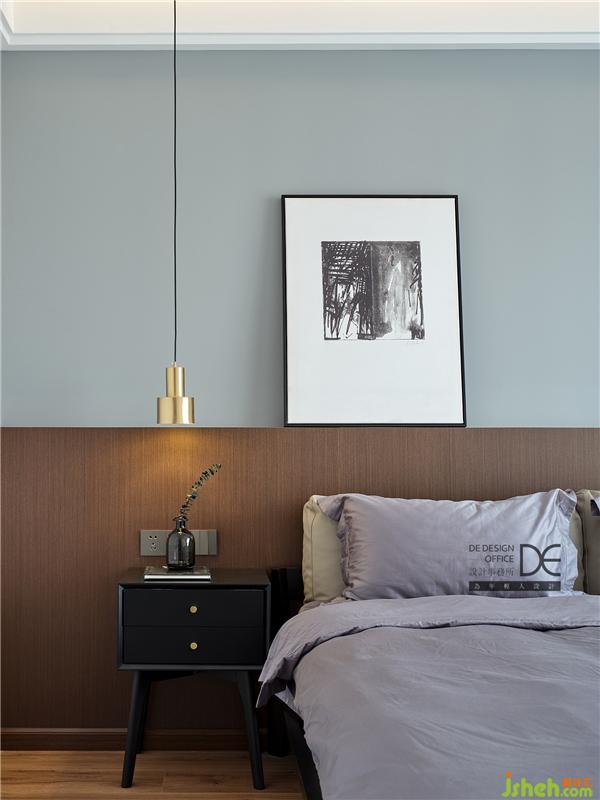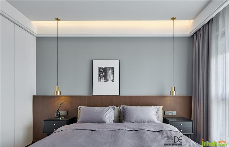 通过不同色调组合凸显层次,金属床头吊灯增添一抹现代精致感。