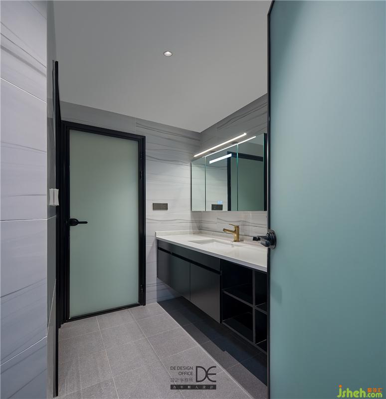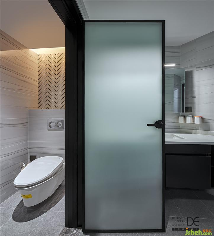 三分离卫生间,功能相互独立且互不打扰。马桶间采取了壁挂式马桶的设计,因排水管可走墙内而顺利解决排水移位的问题。