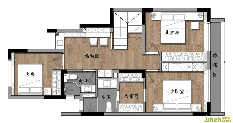2)房间需要四室,在满足五口人的功能需求上,还希望有一间客房和一间书房;