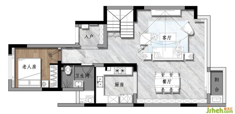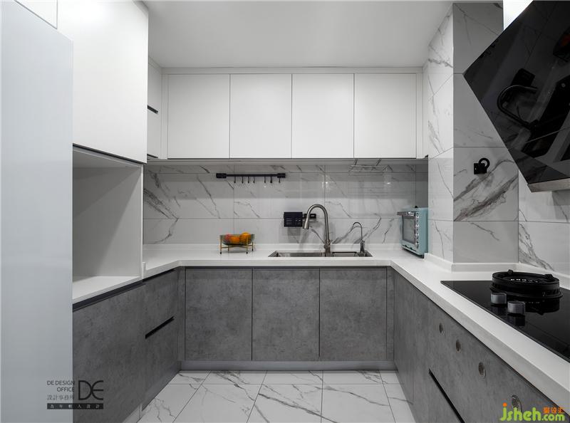 由于户型原因,厨房往生活阳台移了60公分,增加了厨房的面积,使厨房布局更合理,确保了厨房能够满足一大家人的生活需求。