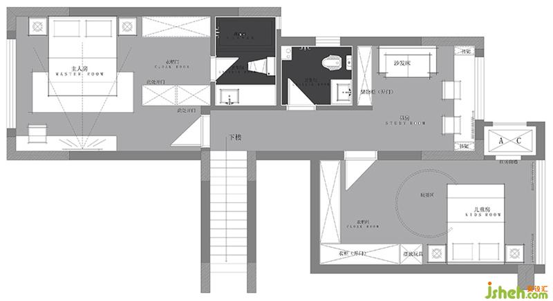 4)二楼需要一个小起居室及书房功能,可以偶尔打个游戏。
