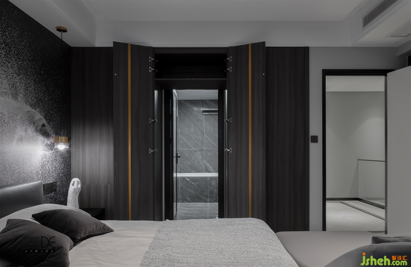 独立卧室、独立衣帽间、独立卫生间,形成睡眠区、衣帽区、洗浴空间的独立分割,满足男主精致有条理的生活习惯。