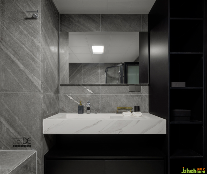 卫生间延续空间的黑白灰调性,简单纯粹,彰显空间质感,于细节之处展现美感。