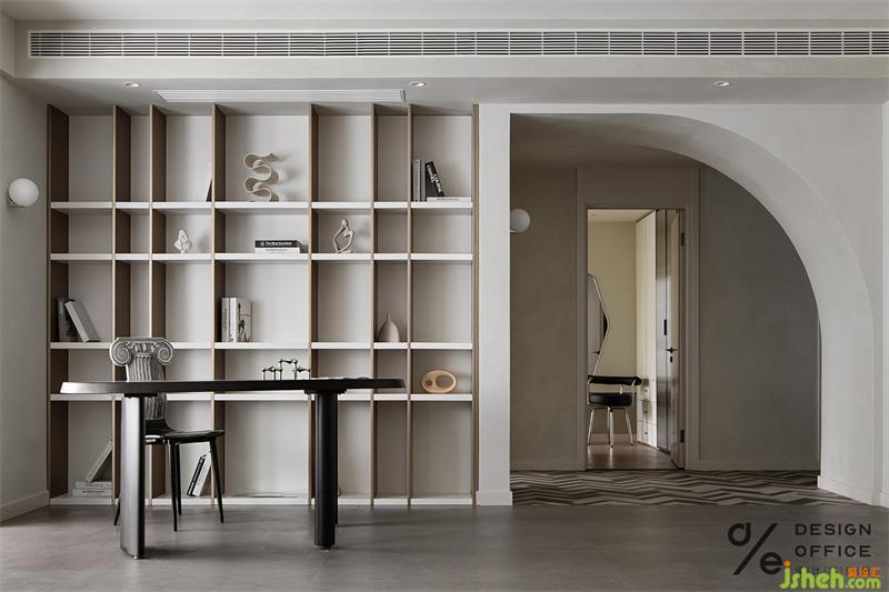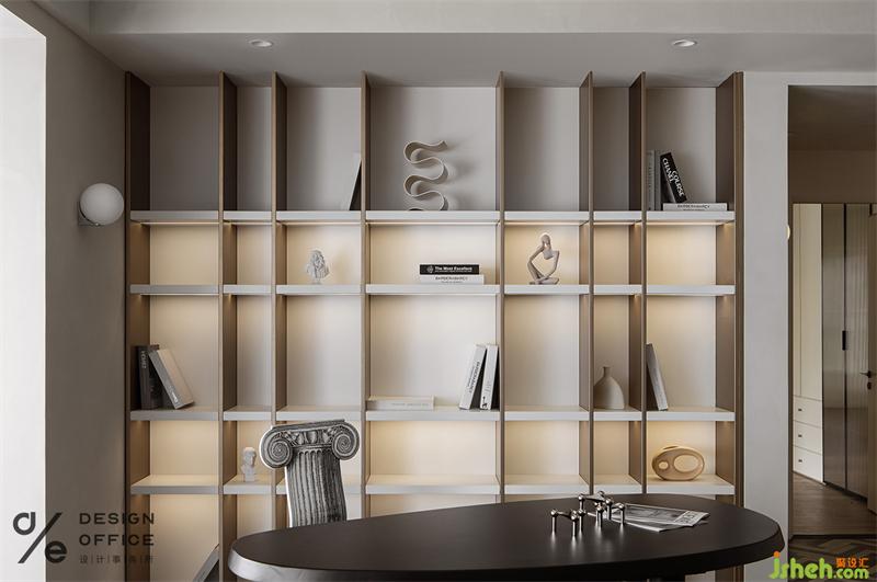 家居设计采用更加明亮的光照。定制的书柜,隐形的开关设计,嵌入式灯带,给空间融入了更多的层次,体现出空间的丰富感和大气感。